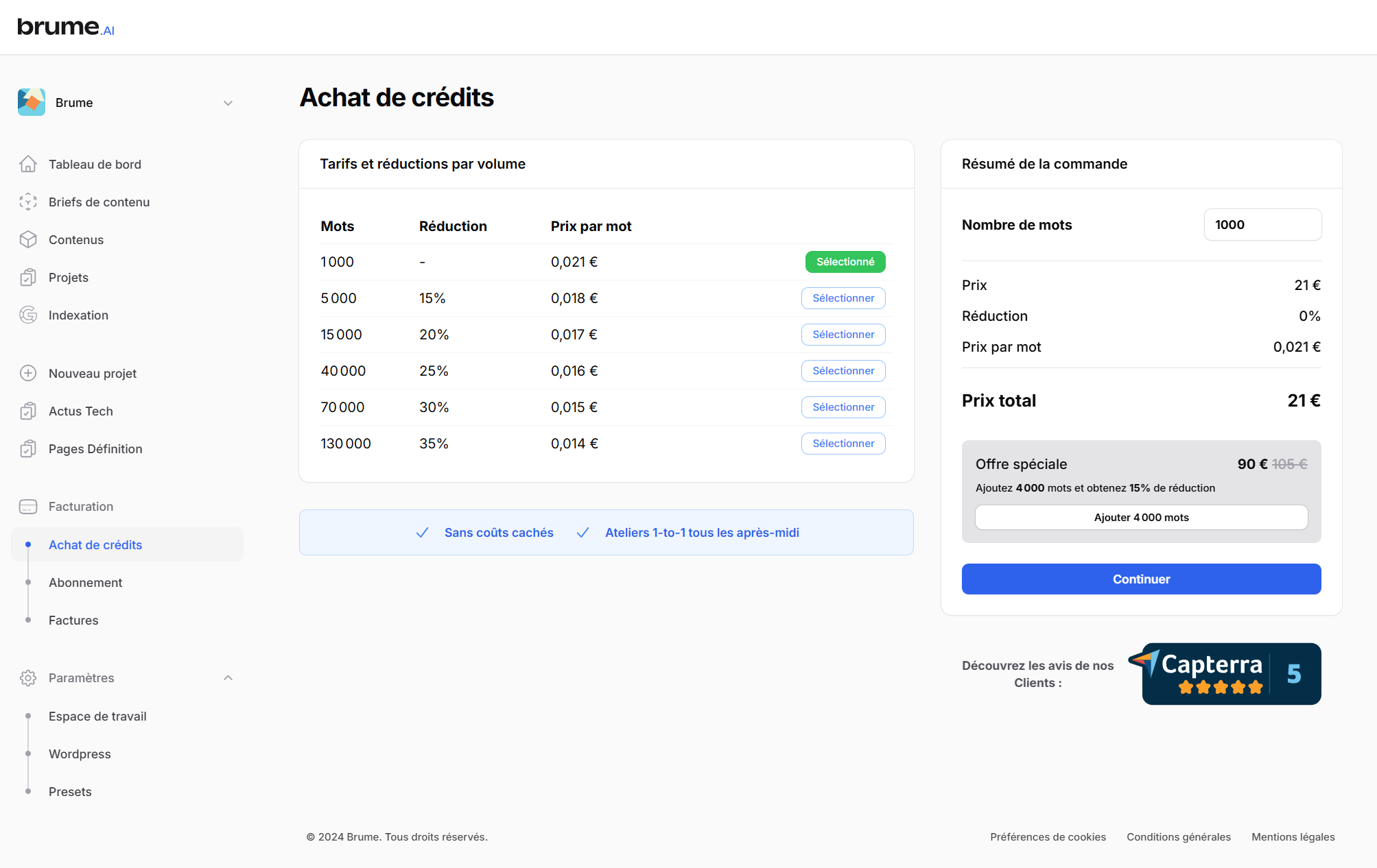 A partir de 21€ HT pour 1000 mots.Tarifs dégressifs en fonction du volume.